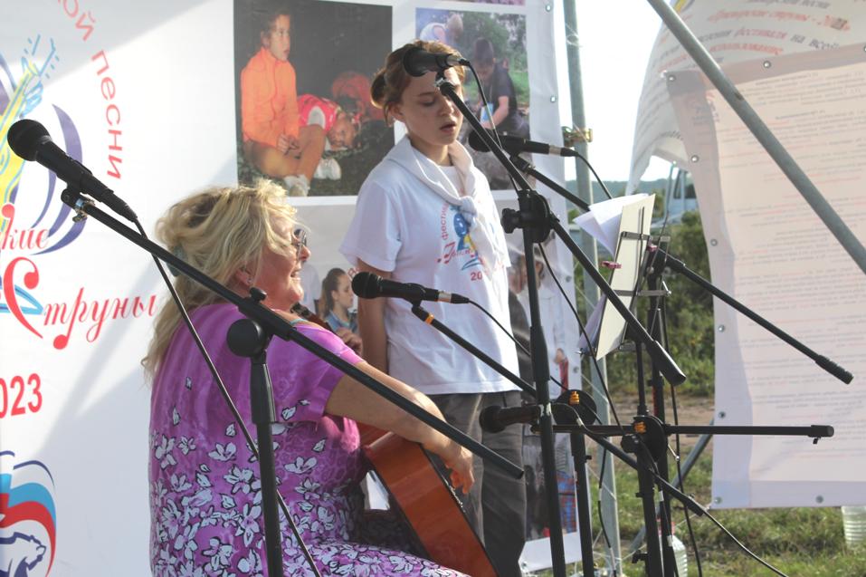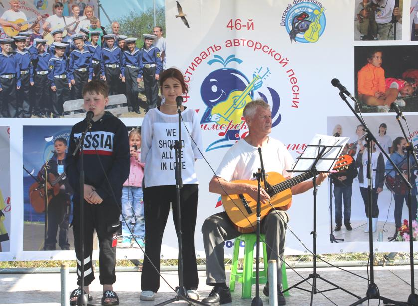 Звонкие детские голоса Миши Епифанцева и Дианы Борщовой, тонкий и нежный голос Ангелины Викторовой, милое исполнение Машей Шаповаловой песни Лисы Алисы в лисьем манто Булата Окуджавы – трогательно воспринимались зрителями, помогая детям сделать первые свои шаги на сцене. Тут же на фестивале молодым бардам пришлось выучить и исполнить песню Елены Воронцовой «Живите, живите, Приморские струны, пусть к вам приезжает и взрослый и юный…»